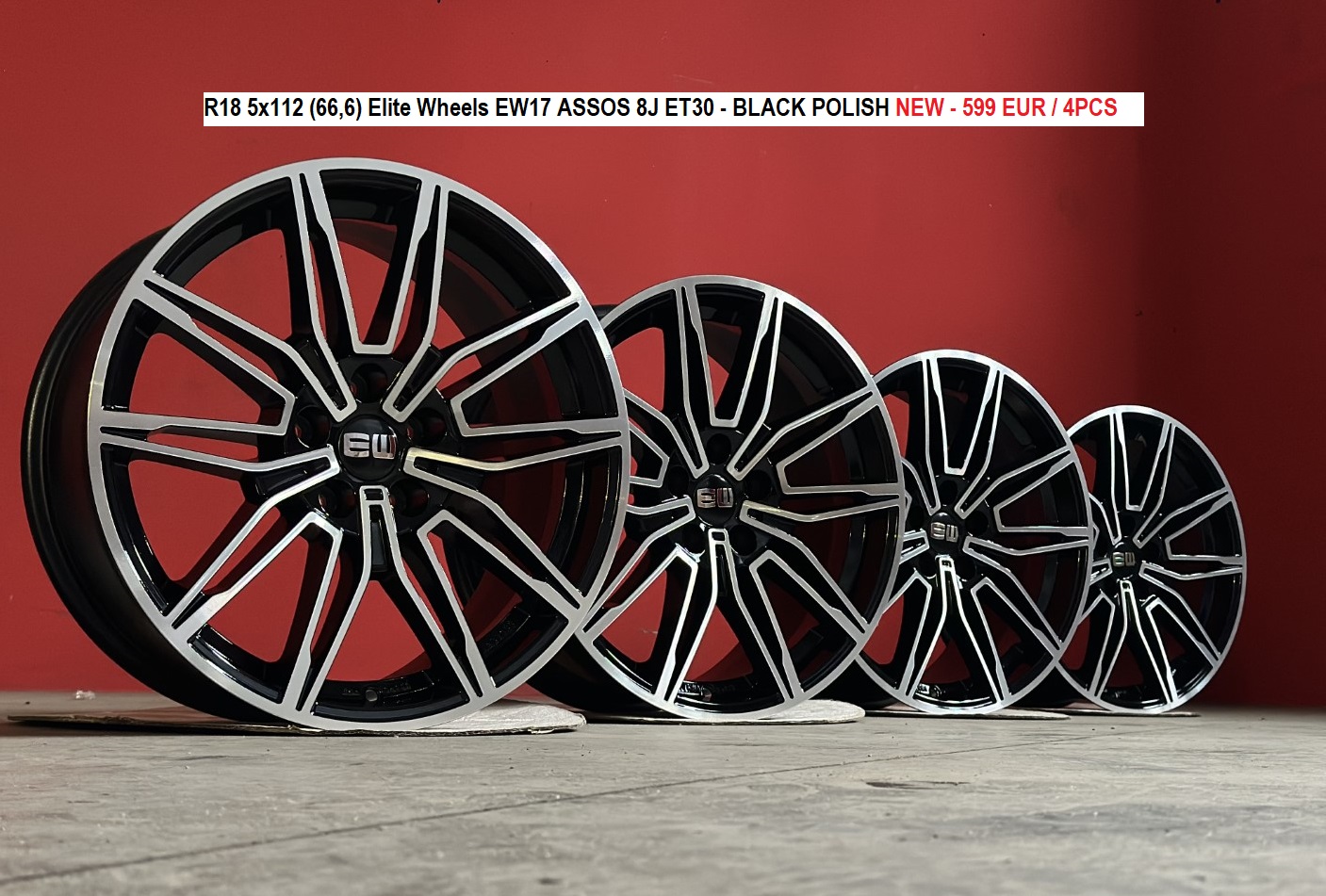 R18 5x112 (66,6) Elite Wheels EW17 ASSOS 8J ET30 - BLACK POLISH NEW - 599 EUR / 4ks s DPH