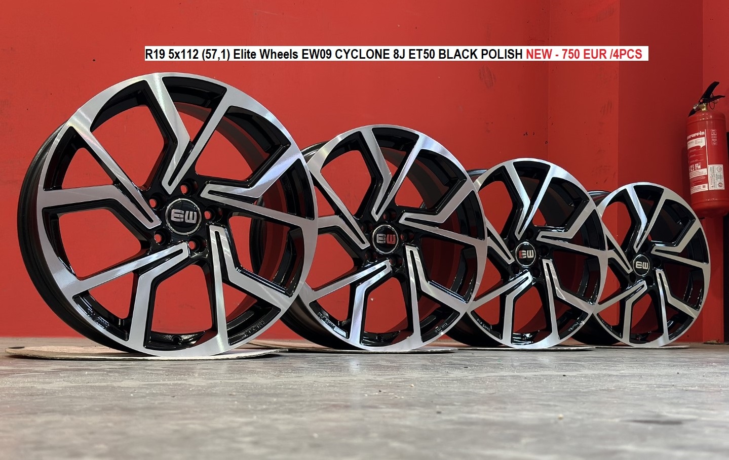 R19 5x112 (57,1) Elite Wheels EW09 CYCLONE 8J ET50 BLACK POLISH NEW - 750 EUR / 4ks s DPH